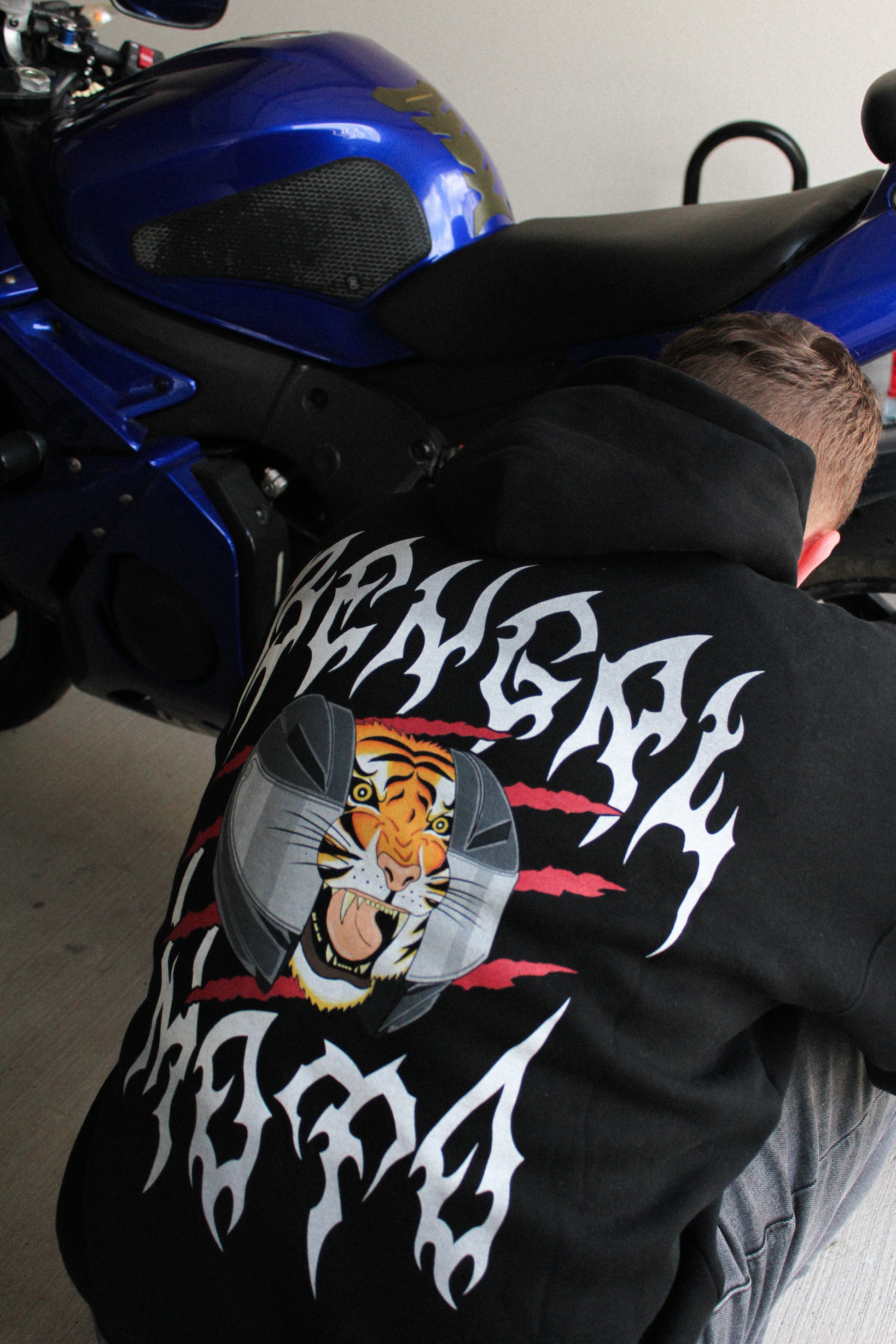 This medium weight hoodie is designed for year round wear and comfort on and off your motorcycle. The fabric is just thick enough to supplement in the winter and just light enough to wear on summer nights. Now improved with an embroidered front logo so that others can see your mark from a mile away.